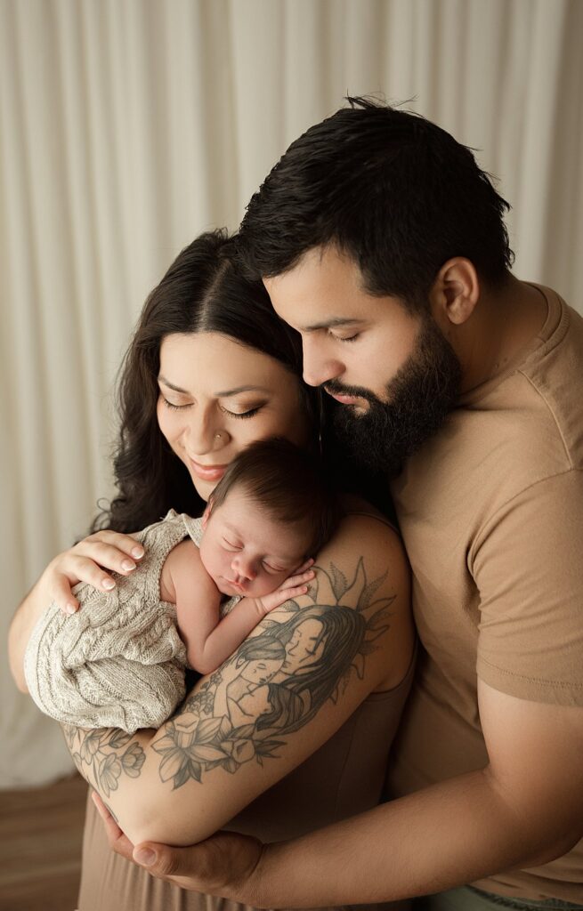 Their newborn was calm and peaceful, curling into the softest, sleepiest poses as we moved through the session. Wrapped in neutral textures and gentle tones, every image felt timeless and organic—designed to keep the focus exactly where it belongs: on their baby and the love surrounding him.