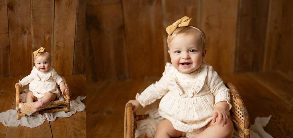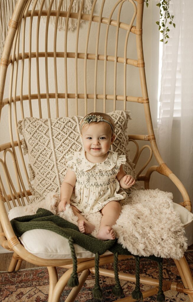 Sitter sessions are typically scheduled when babies can sit independently, usually between 6–9 months old. This stage goes by quickly, and these portraits often become parents’ favorites as they watch their child’s personality begin to shine.