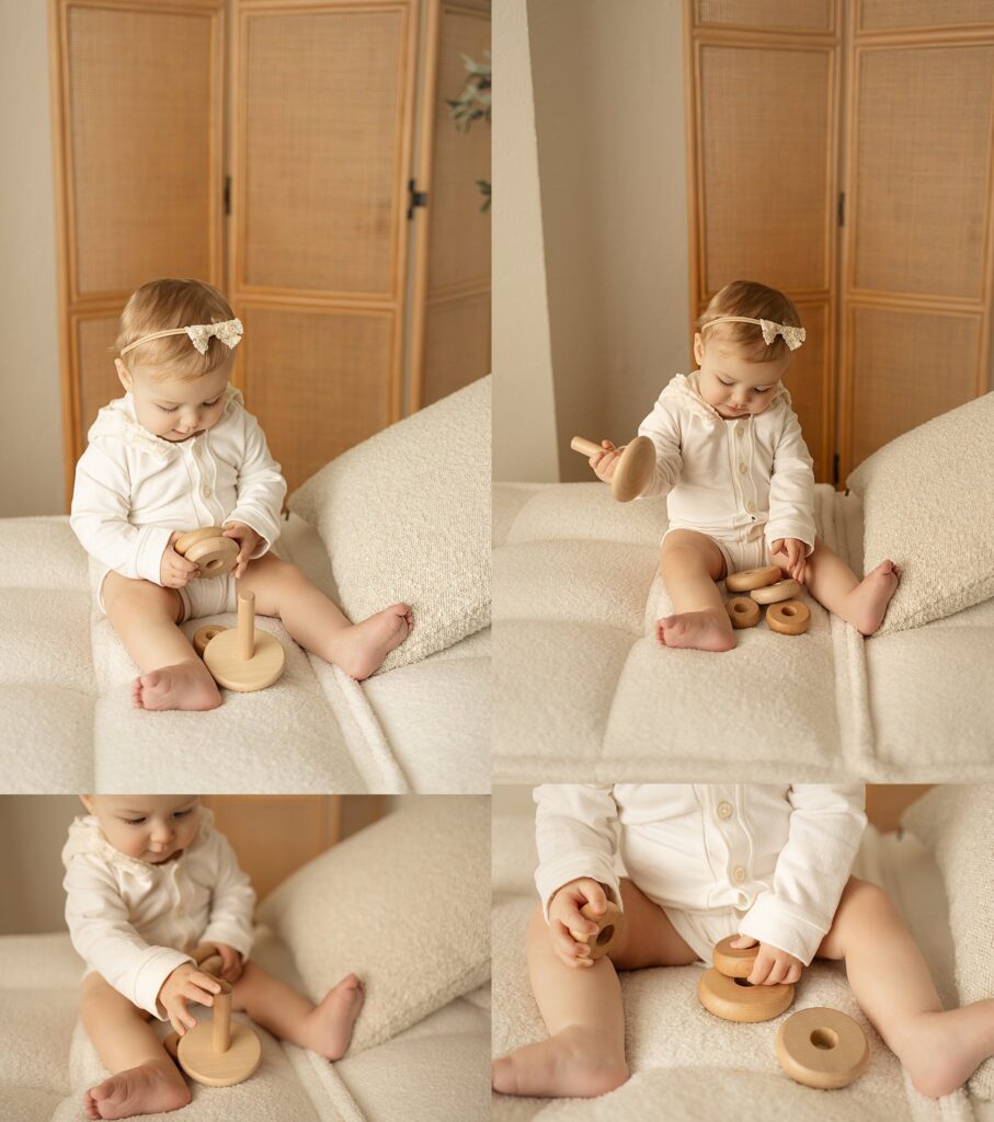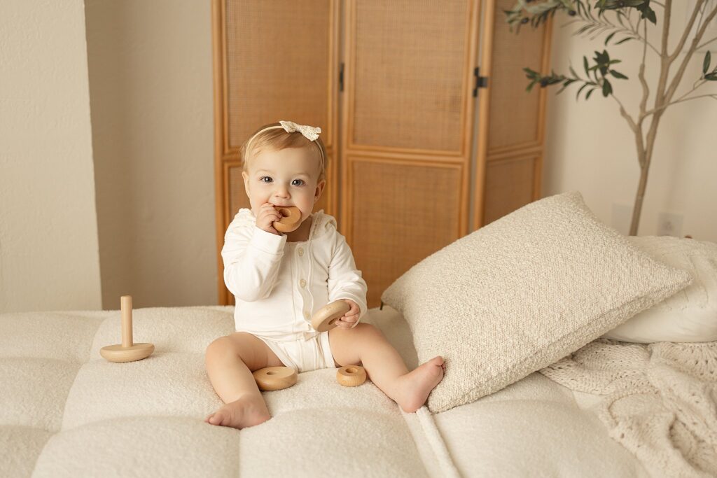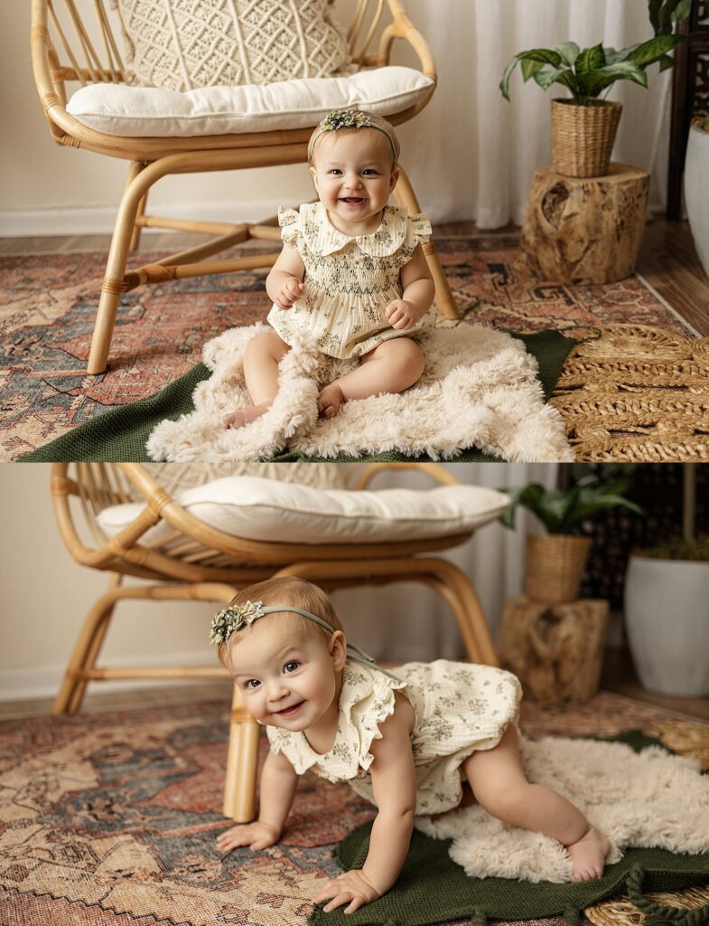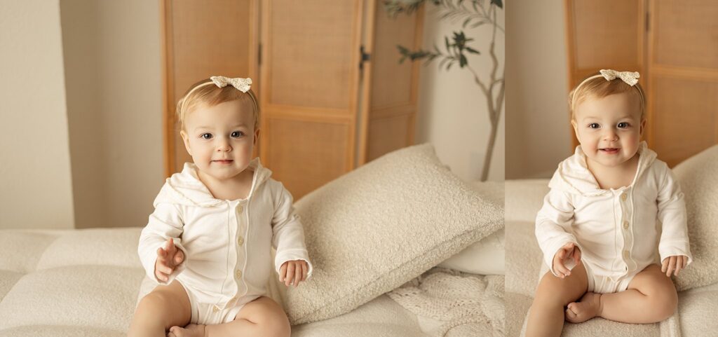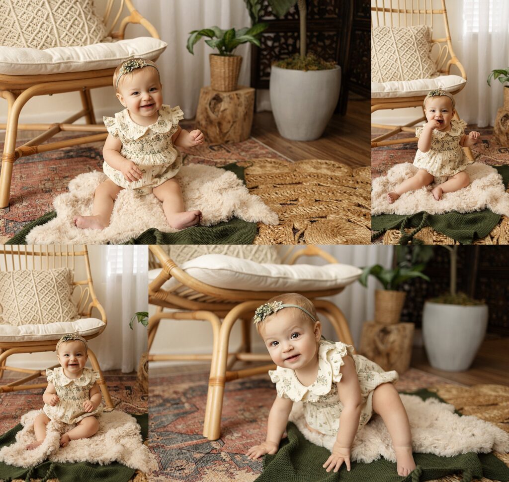 At this stage, babies are sitting confidently, full of expression, and showing off their unique personalities. This little girl was incredibly fun and talkative, with the sweetest smiles and curious expressions that made her session feel effortless and joyful. Every moment felt genuine, playful, and full of life.