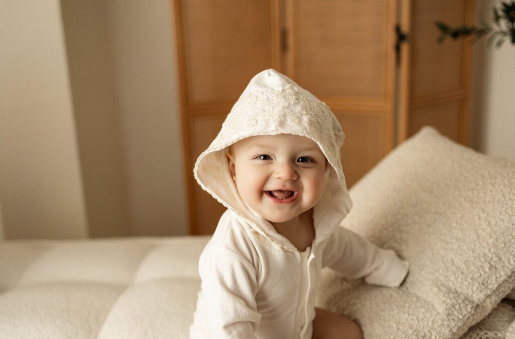 As a Cleveland milestone photographer, I focus on creating timeless images that highlight your baby’s personality without distractions. Soft neutrals, simple styling, and a calm studio environment allow your child to be the center of every image.